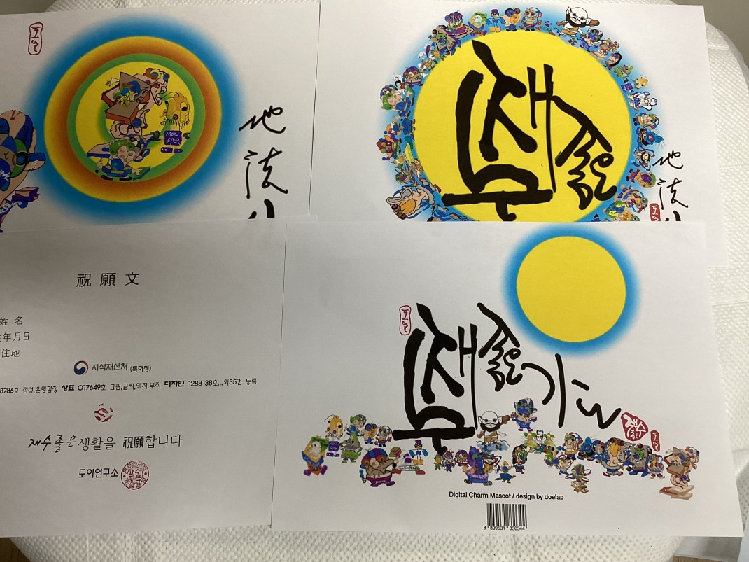 이 글씨,액자,는 심적안정을 추구하는 부적이며 지식재산처(특허청)상표40-0717649호며 / 점성,운명감정은 서비스표 41-0168786호이고
